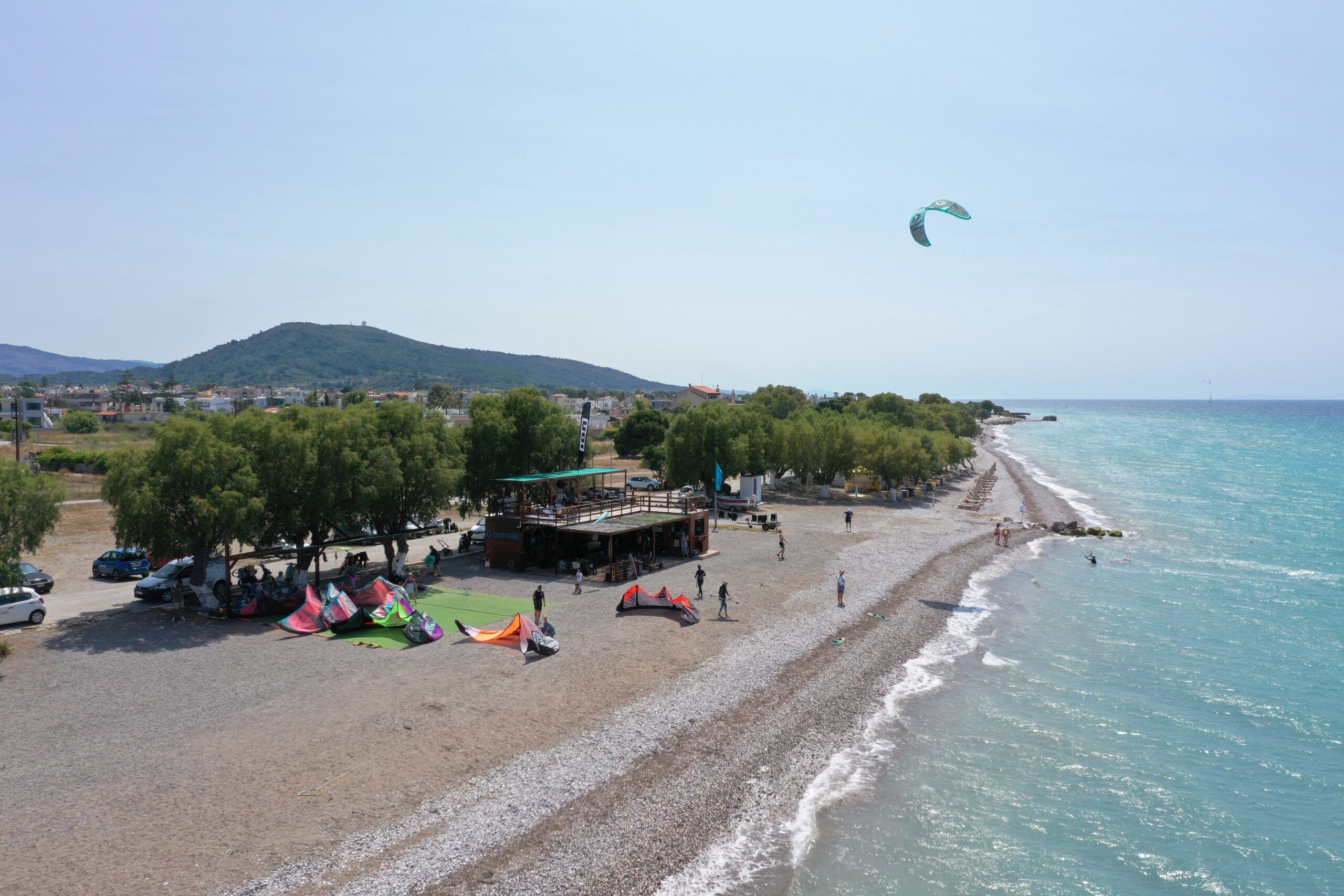 The Air Riders spot on Kremasti beach offers empty waters and a clear shore-line
